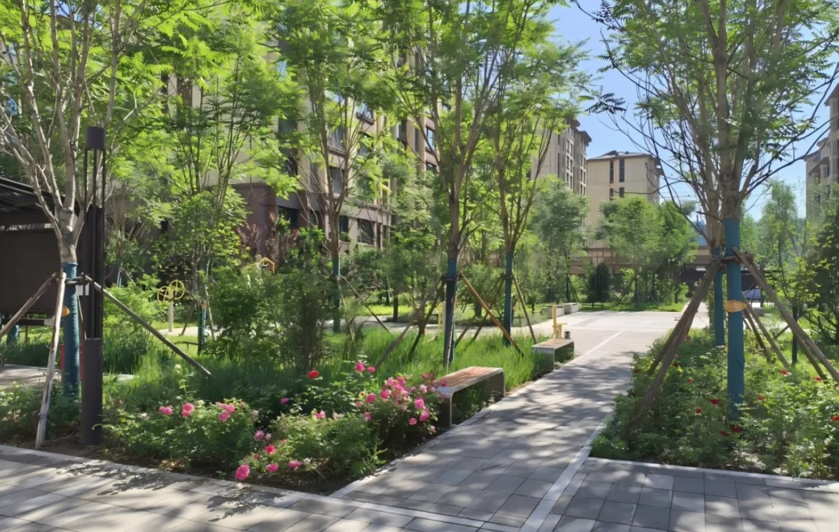 项目采用海绵城市技术建造下凹式绿地